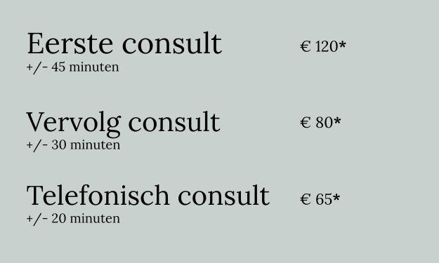 *Een consult kan online, op locatie Noordwijk of Rijnsburg (meerprijs €50) of bij u thuis (meerprijs binnen bollenstreek €100) gepland worden.